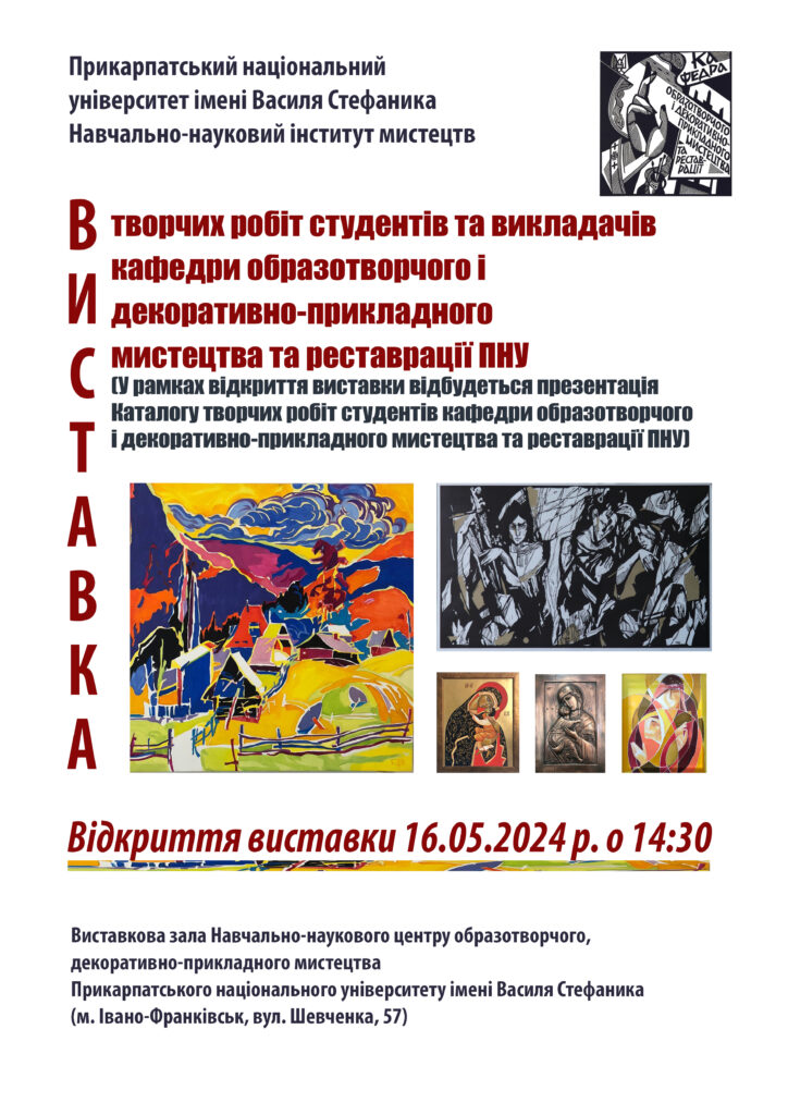 Вийшов друком Каталог творчих робіт студентів кафедри образотворчого і декоративно-прикладного мистецтва та реставрації Прикарпатського національного університету імені Василя Стефаника. У Каталозі представлено творчі роботи здобувачів освіти спеціальності 023 «Образотворче мистецтво, декоративне мистецтво, реставрація» з рисунку, живопису та фахових спеціалізацій, зокрема Читати далі