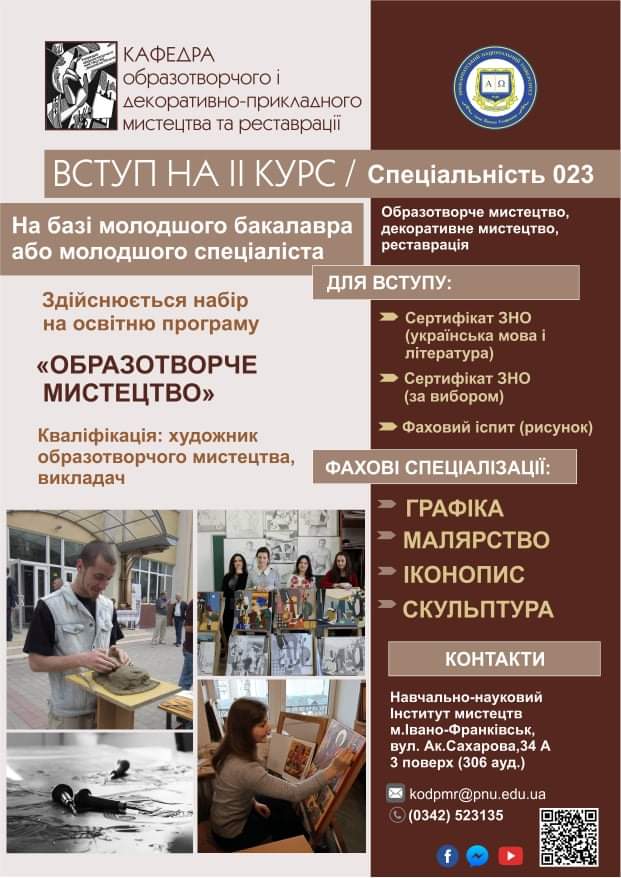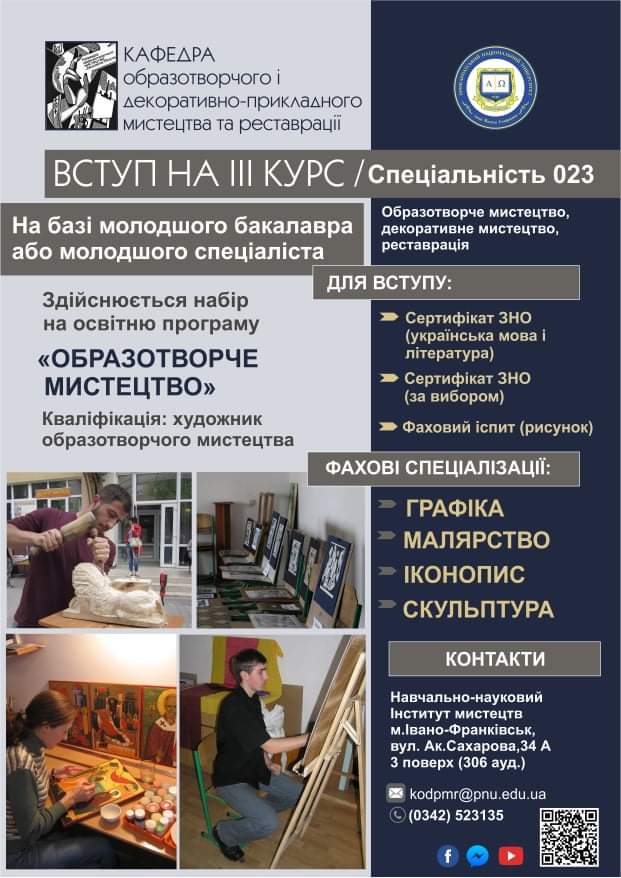 Кафедра образотворчого і декоративно-прикладного мистецтва та реставрації продовжує профорієнтаційну роботу серед молоді нашого краю. 20 квітня 2021 н. р. відбулась чергова презентація освітніх програм для випускників ліцею №2 м. Івано-Франківськ. Викладачами кафедри була проведена змістовна розповідь-презентація досягнень та здобутків у Читати далі